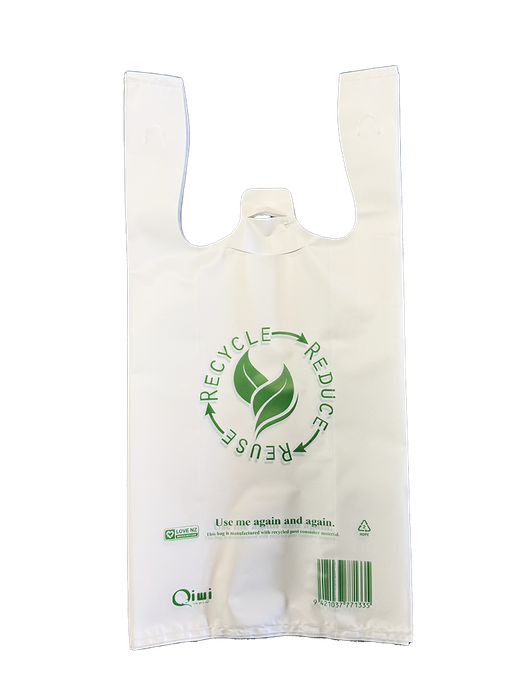 Qiwi Small Reusable Carry Bag White Printed 75mu, 210 + 100 x 400mm, 1000 Pieces Carton