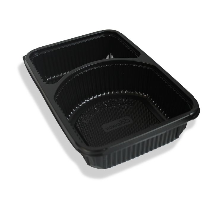 Qiwi PP 2 Compartment 680/380ml Rectangle Container Black, 50 Pieces Pack x 8 Packs Carton