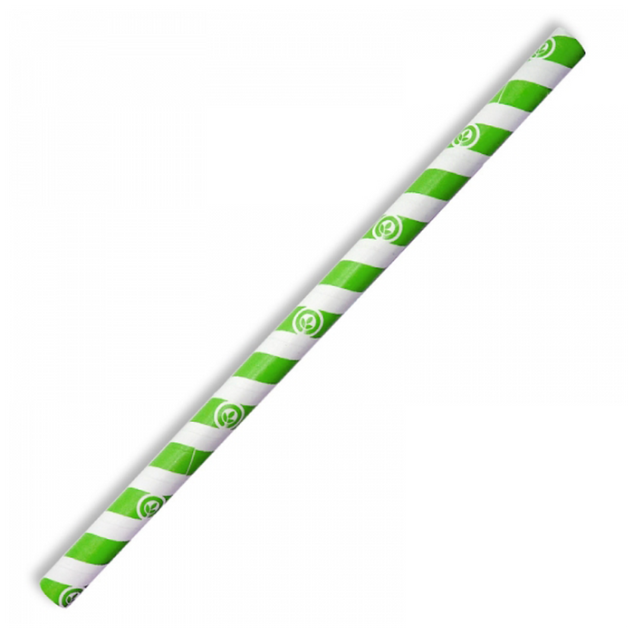 Jumbo Paper Straws Green Stripes FSC Paper, 10x197mm, 100 Pieces Packet x 25 Packs Carton