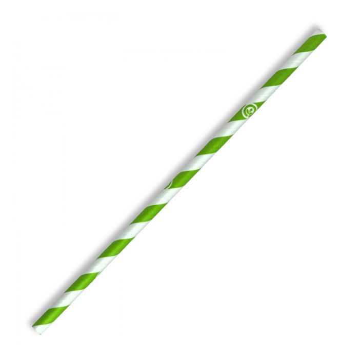Regular Paper Straws Green Stripes, FSC Paper, 6x197mm, 250 Pieces Packet