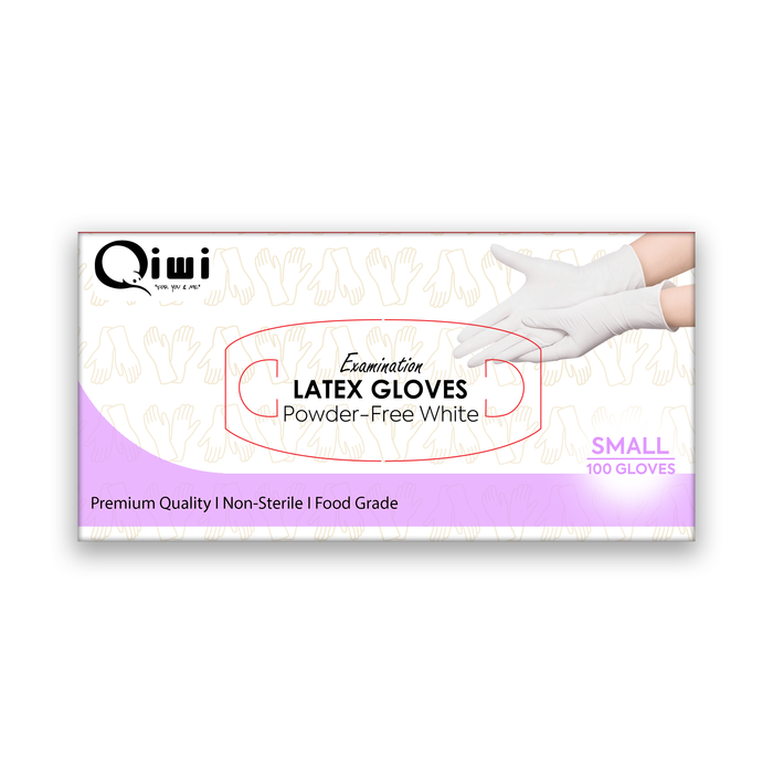 Qiwi Latex Gloves Powder Free White Small, 6g, 100 Pieces Pack x 10 Packs Carton