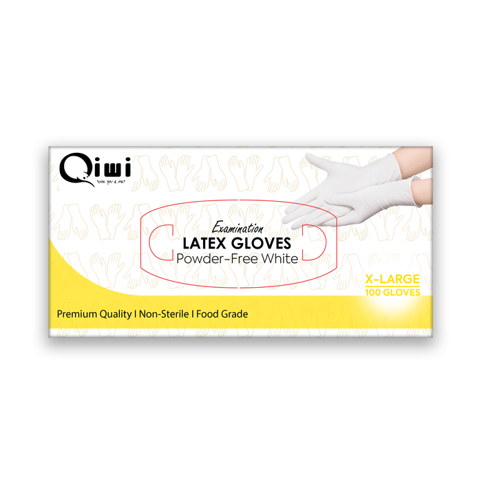 Qiwi Latex Gloves Powder Free White Extra Large, 6g, 100 Pieces Pack x 10 Packs Carton