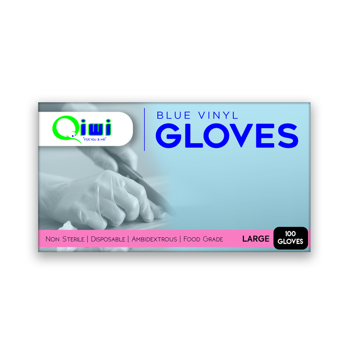 Qiwi Vinyl Gloves Powder Free Blue Large,Food Grade, 100 Pieces Pack x 10 Packs Carton