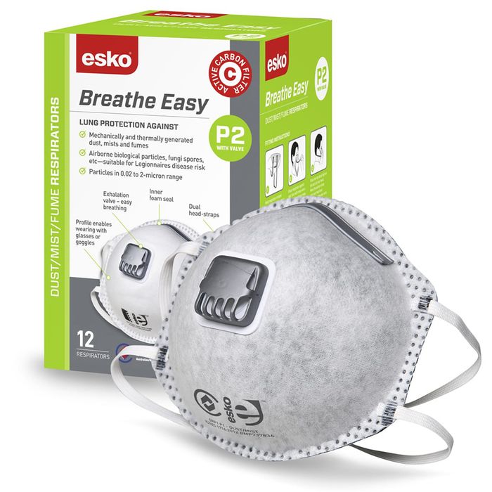 Esko Breathe Easy Dust Mask P2 with Active Carbon Filter & Valve, 12 Pieces Packet