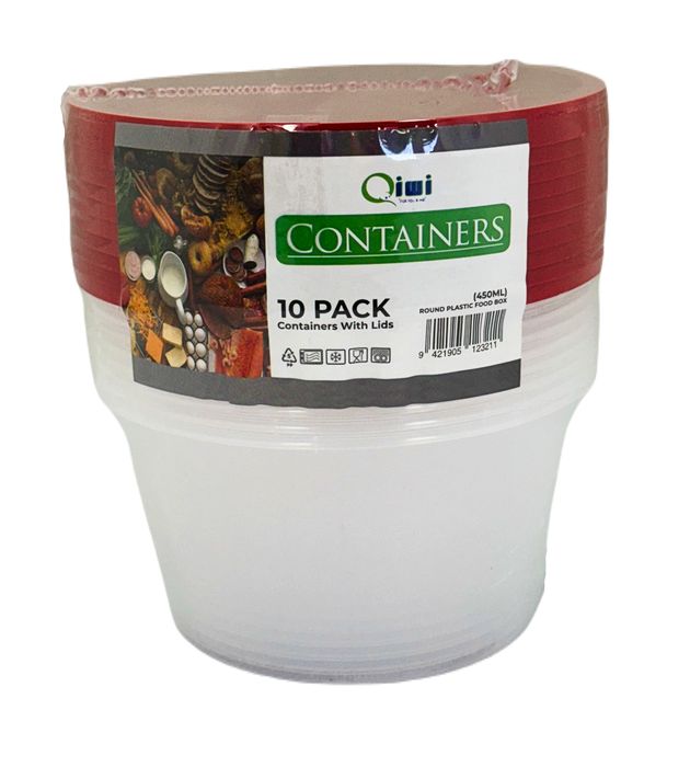 Qiwi PP 450ml Coloured Round Container Set 10pk,Retail, 10 Pieces Per Pack x 20 Packs Carton