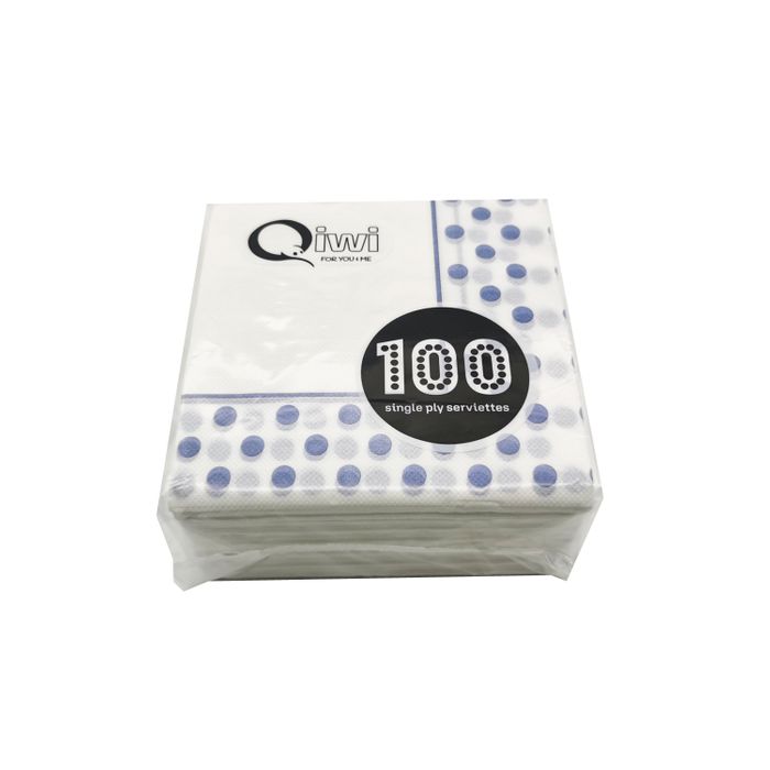 Qiwi 1 Ply Printed Serveittes Polka Dot Design Blue 1/4 Fold,30x30cm Opened, 100 Pieces Per Pack x 30 Packs Carton