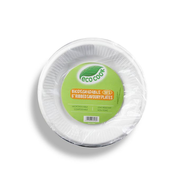 EcoCook 6" Ribbed Biodegradable Savoury Plates, 50 Pieces Pack x 20 Packs Carton