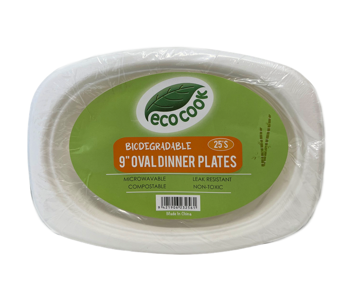 EcoCook 9" Oval Biodegradable Dinner Plates, 25 Pieces Pack x 10 Packs Carton
