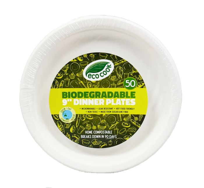 EcoCook 9" Biodegradable Dinner Plates, 50 Pieces Pack x 10 Packs Carton