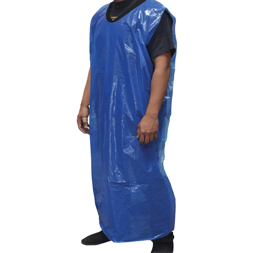 P Disposable Sleeveless PE Aprons / Smock Blue, 800mm x 1400mm , 250 Pieces Carton - Front & Back Coverage - Block Header