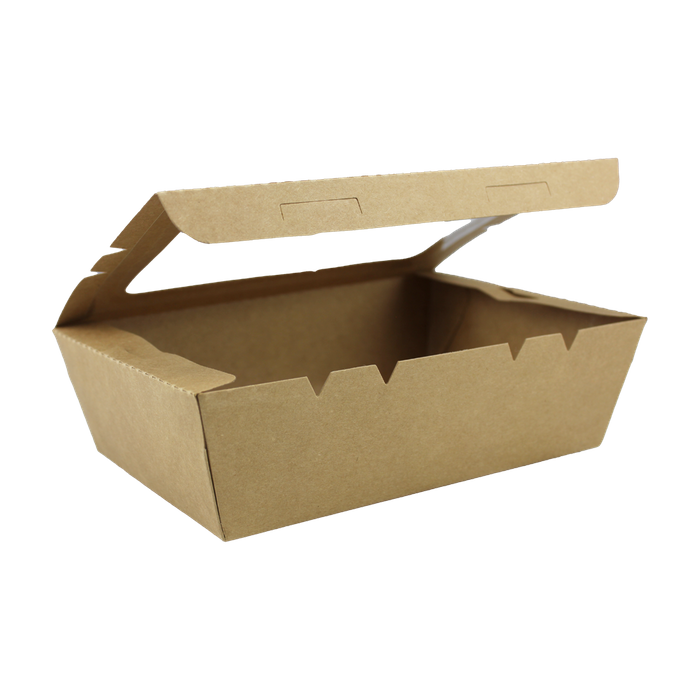 Qiwi 1600ml Kraft Window Paper Container with Hinged Lid, 211 x 153 x 60 mm, 200 Pieces Carton