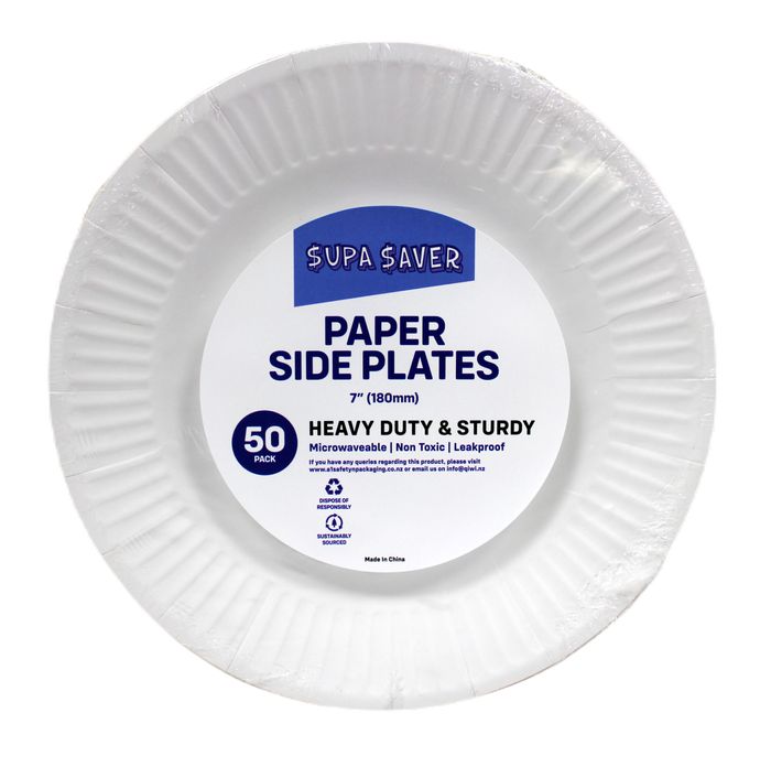 Supa Saver 7" Paper Side Plate, 50 Pack x 10 Packs Carton