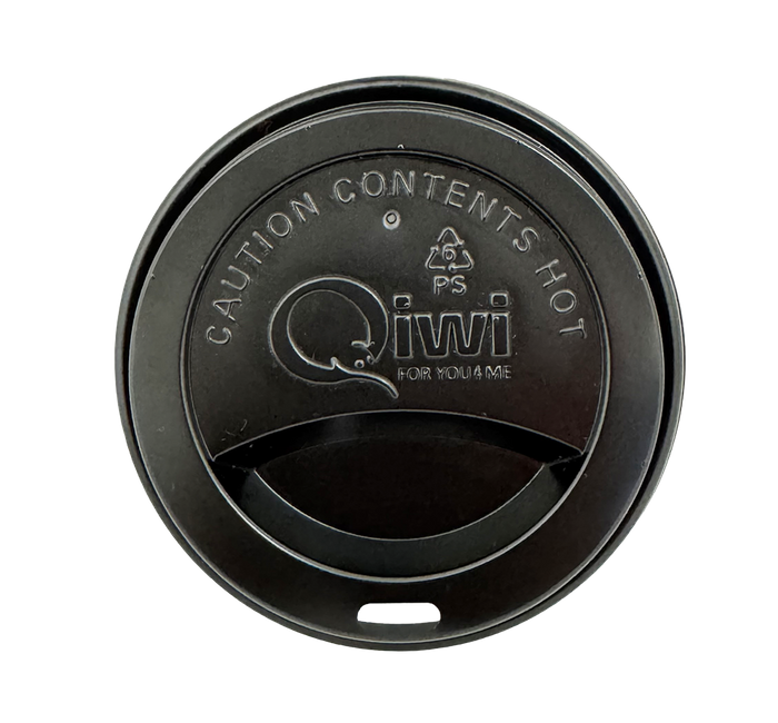 Qiwi PS Coffee Cup Lid Black to Suit Q Range, One Size Fits All 90mm, 100 Pieces Pack x 5 Pack Carton