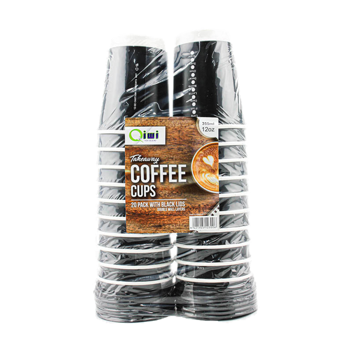 Qiwi 12oz/355ml Retail Double Wall Coffee Cups PE Lined, 20 Pieces Pack x 20 Packs Carton
