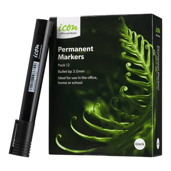Icon Permanent Marker Black Bullet Tip, 12 Pack