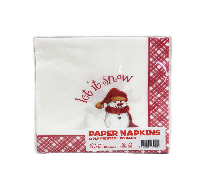 Qiwi 1/4 Fold Lunch Napkin 2Ply, Full Print " Snow Man", FSC, 33x33cm Openend, 20 Pieces Pack x 100 Packs Carton