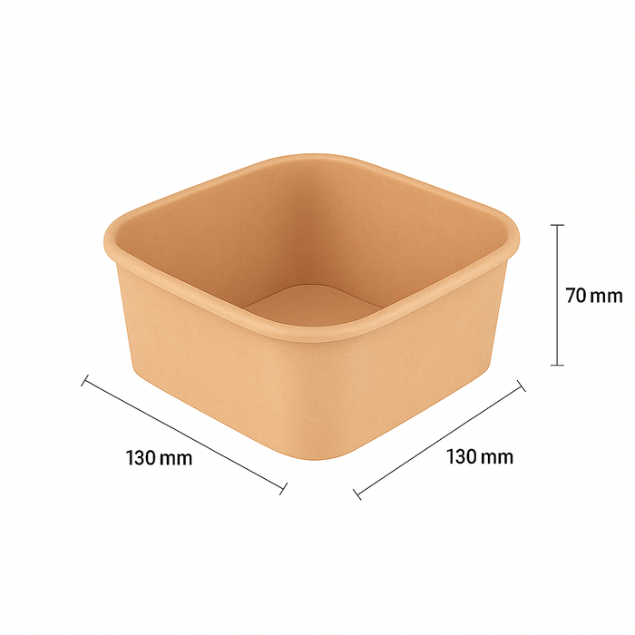 Qiwi 750ml Sqaure Kraft Paper Container, 130mm x 130mm x 70 mm, 50 Peices Pack x 6 Packs