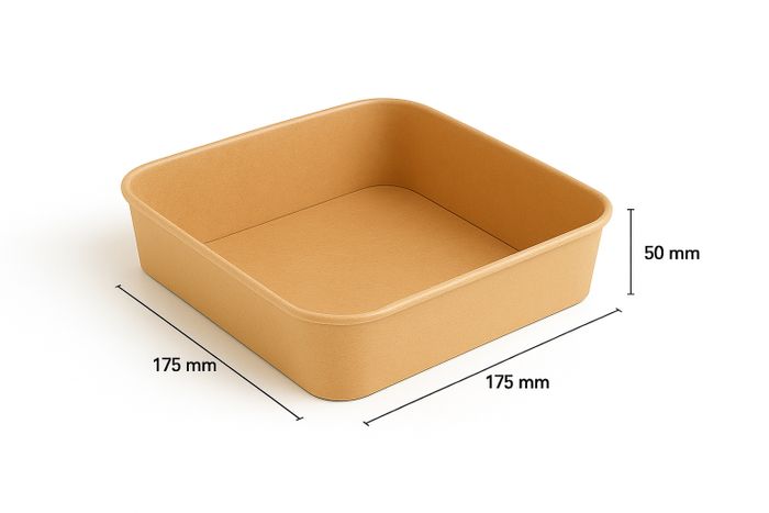 Qiwi 1000ml Sqaure Kraft Paper Container, 175mm x 175mm x 50mm, 50 Peices Pack x 6 Packs