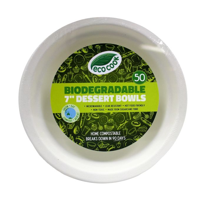 EcoCook 7" Biodegradable Dessert Bowl, 50 Pieces Pack x 10 Packs Carton