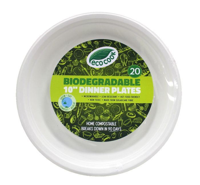 EcoCook 10" Biodegradable Dinner Plates, 20 Pieces Pack x 10 Packs Carton