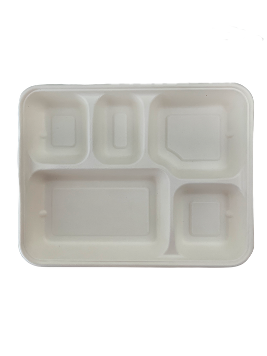 EcoCook 5 Compartment Biodegradable Dinner Tray Deep, 280 x 218 x 37mm, 25 Pieces Pack x 10 Packs Carton