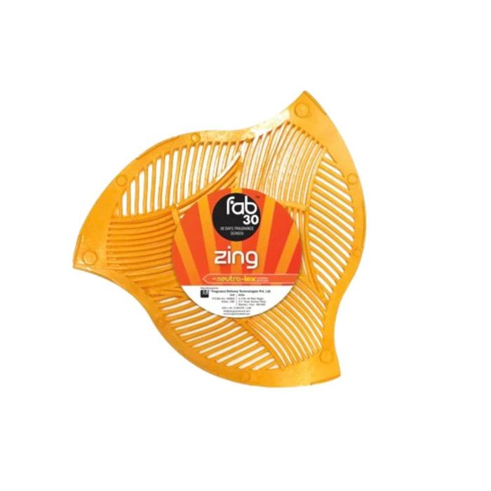 Fab 30 Urinal Screens - Zing - 1 Each 24 Screens Carton - Fab 30 Urinal Screens feature a flexible design that fits any urinal or urinal tray. The coloured screen traps debris, protecting the drain, they are equipped with Neutra-lox malodour eliminator to effectively combat odours for 30 days. Individually packaged with a disposable glove, offering hygienic replacement and disposal.