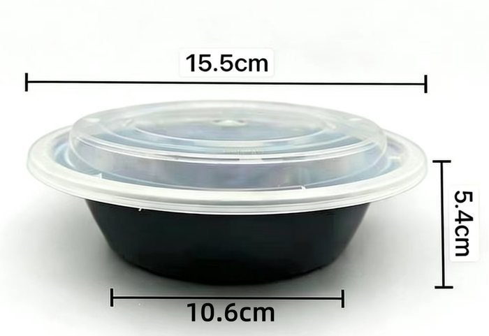 Qiwi PP 500ml Round Container Black + Dome Lid Set , 155 x 54mm, 150 Sets Carton