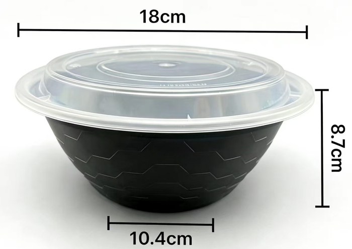 Qiwi PP 1120ml Round Container Black + Dome Lid Set , 180 x 87mm, 150 Sets Carton