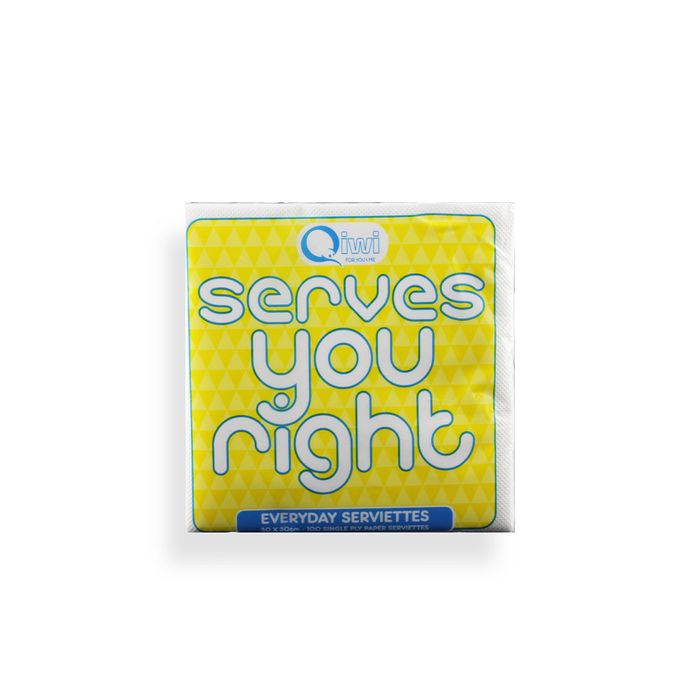 Qiwi 1 Ply Serveittes 1/4 Fold,30x30cm Opened, FSC Paper, 100 Pieces Per Pack x 30 Packs Carton