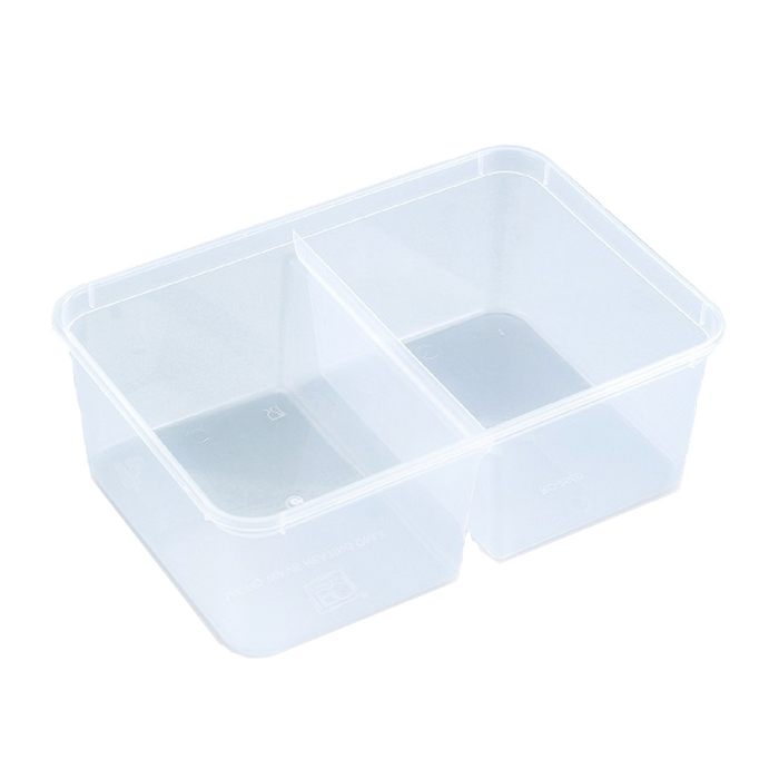 Qiwi PP 650ml 2 Comparment Rectangle Container Clear, 172x120x47mm, 50 Pieces Pack x 10 Packs Carton