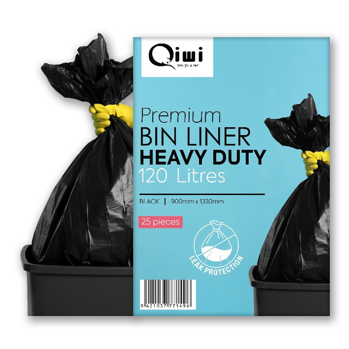 Qiwi Wheelie Bin Bag Black, 900x1330m, 120L 30mu, 200 Pieces Carton